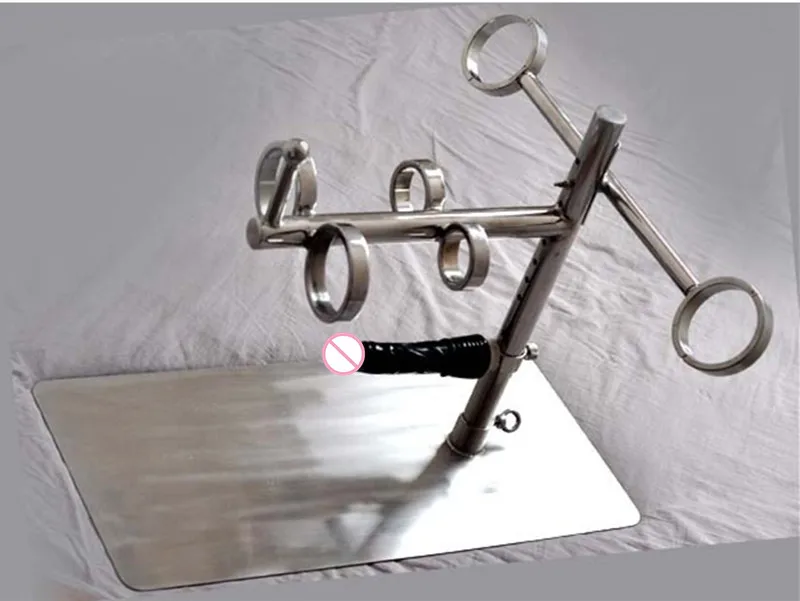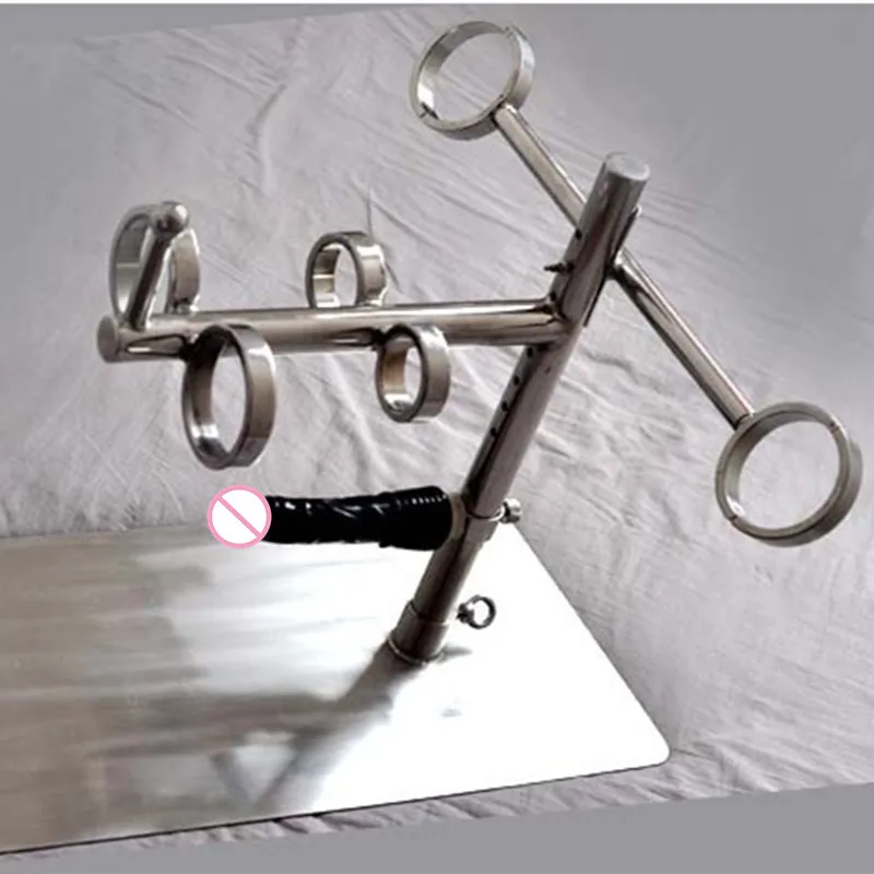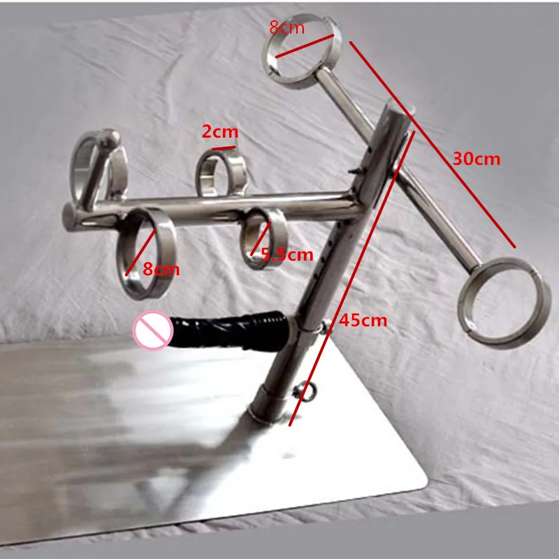 TOP !! Stainless Steel Handcuffs with Fixed Round Rod Bondage Handcuffs for Metal Hand Cuffs Sex Toys for