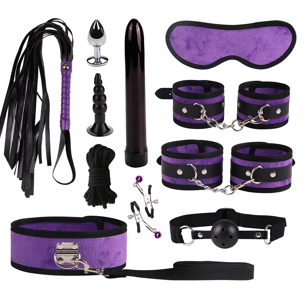 11pcs/set G Spot Vibrators Adult Game Props SM Bondage Restraint Women Sex Toy Leather Handcuffs ClIYI