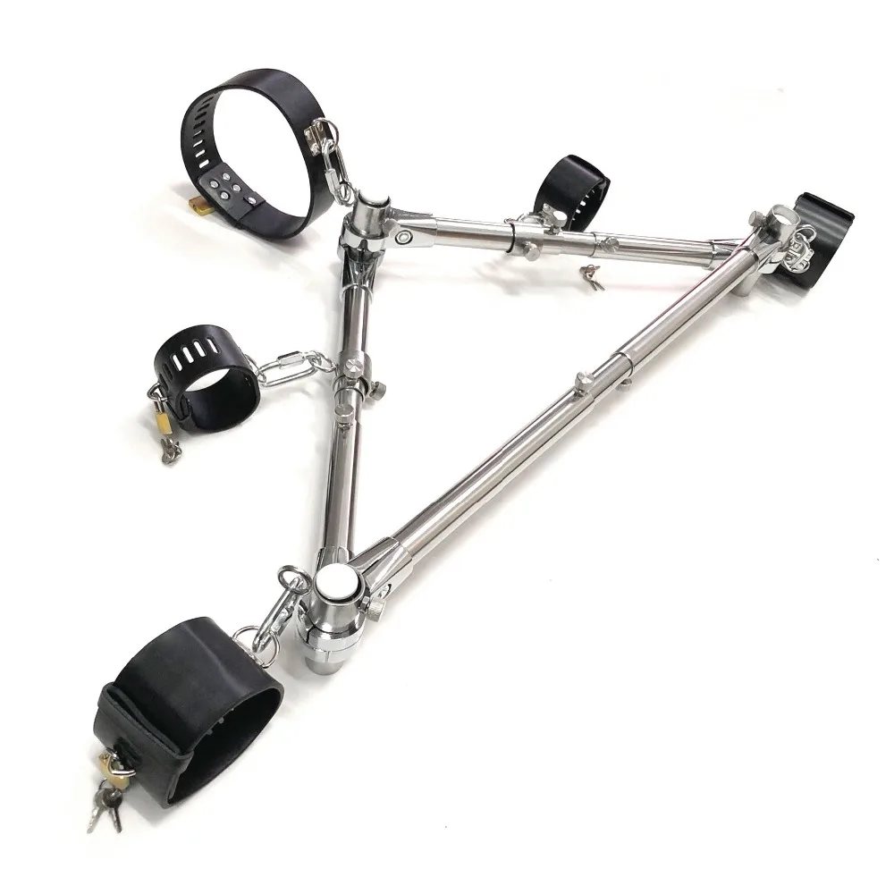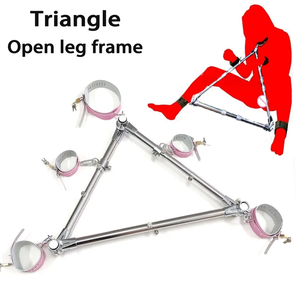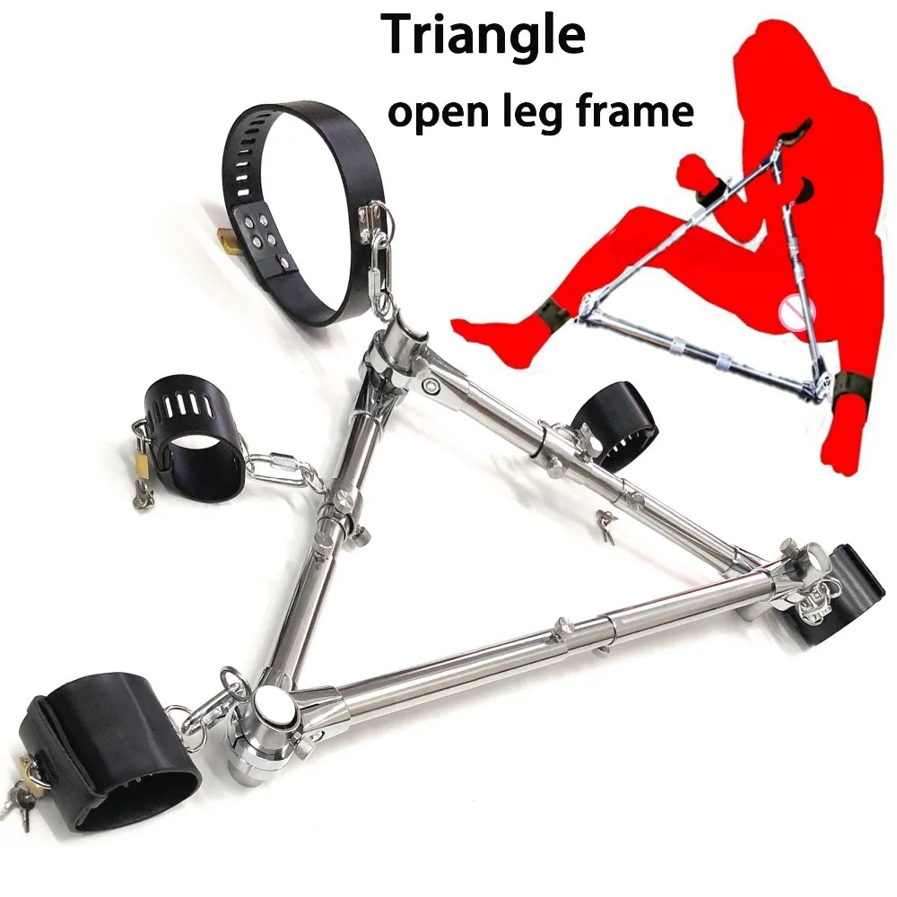 Stainless steel Triangle open leg spreader bar leather restraints collar hand ankle cuffs bdsm bond look the best product that related to