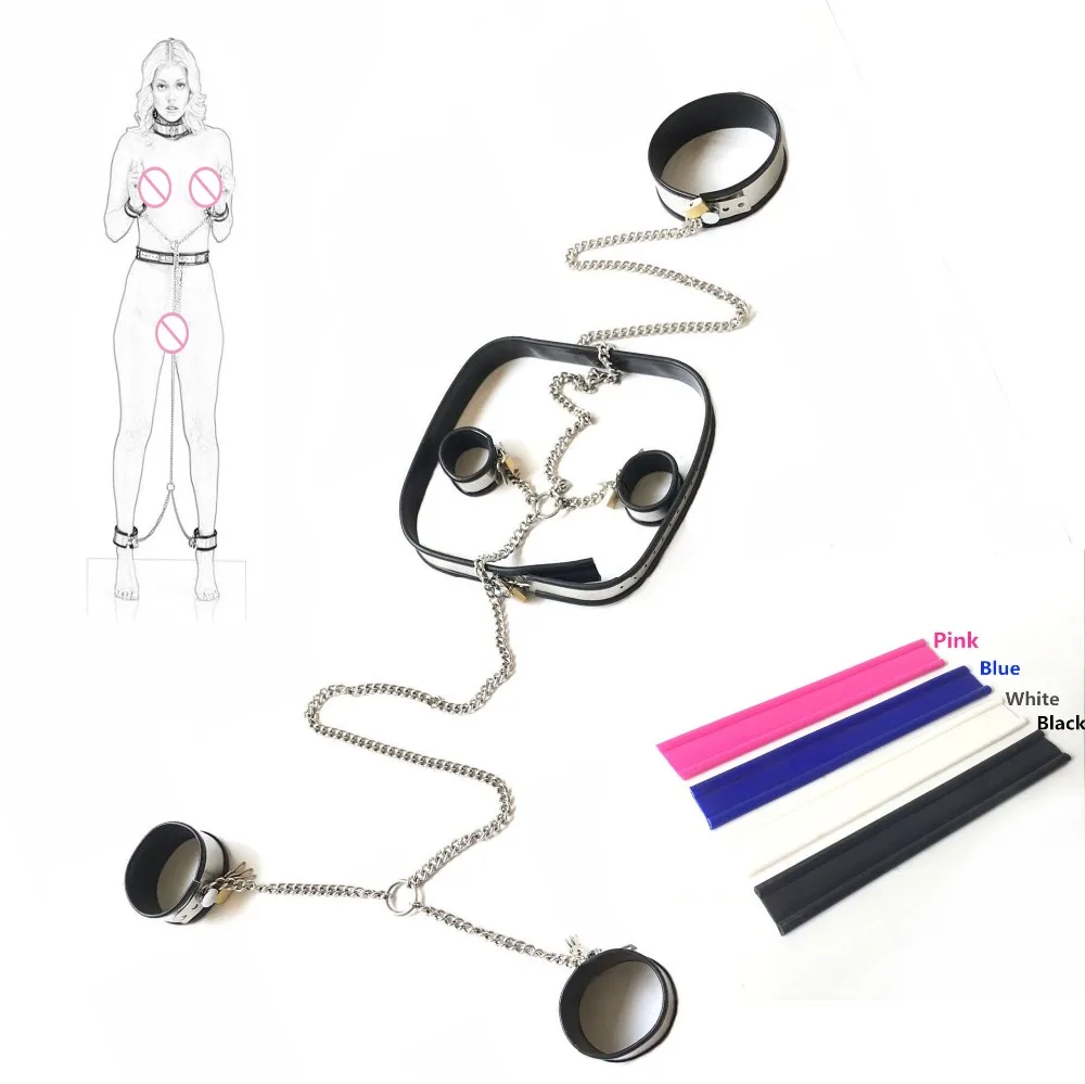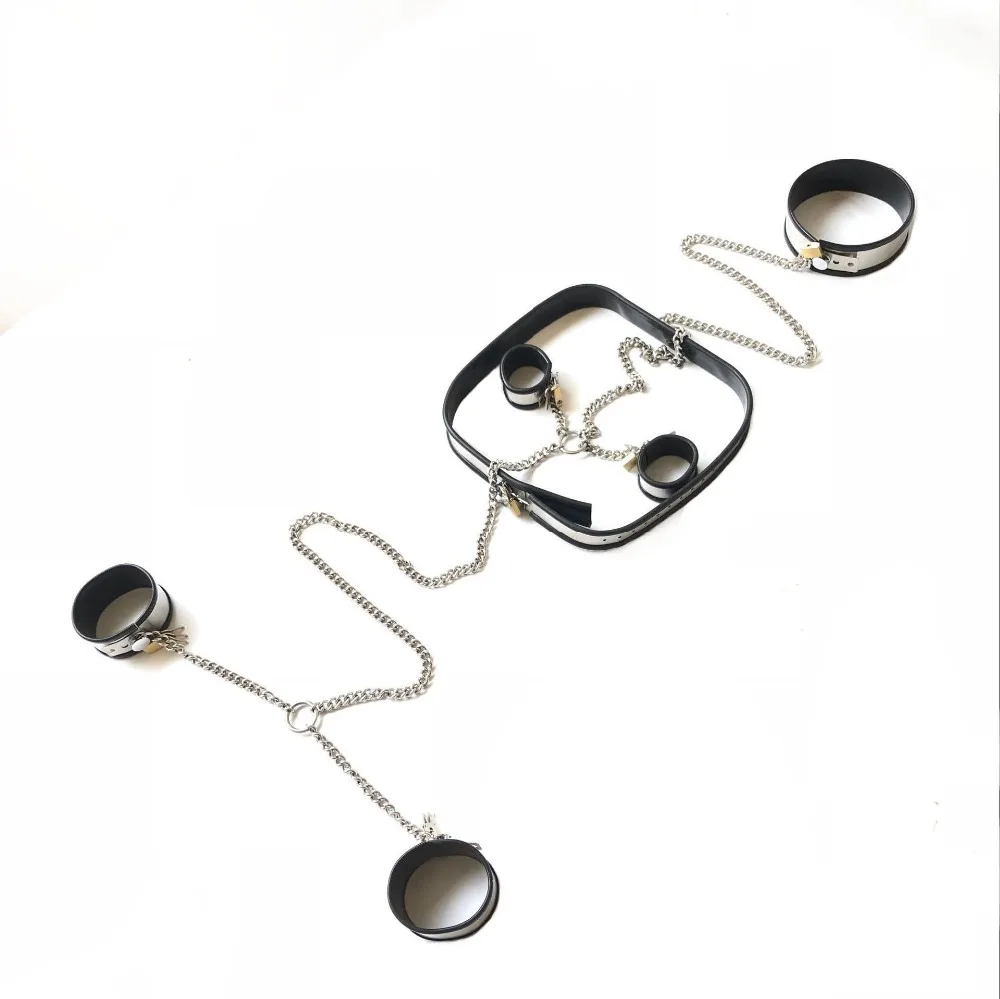 4pcs/Set Bondage Set Handcuffs For Sex Ankle Cuffs Collar Bdsm Kit Chastity Belt Sex Restraints BdsKPZ