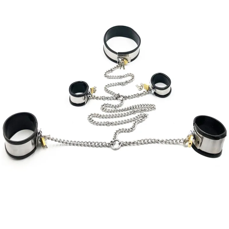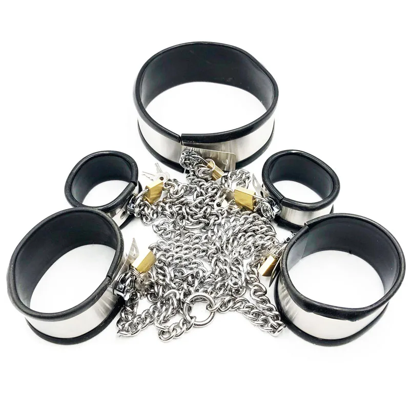 Silicone Liner Stainless Steel Neck Collar Handcuffs Ankle Cuffs BDSM Bondage Sex Toys For Couples MBX
