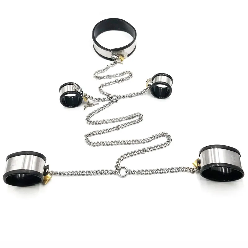Silicone Liner Stainless Steel Neck Collar Handcuffs Ankle Cuffs BDSM Bondage Sex Toys For Couples look the best product that related to