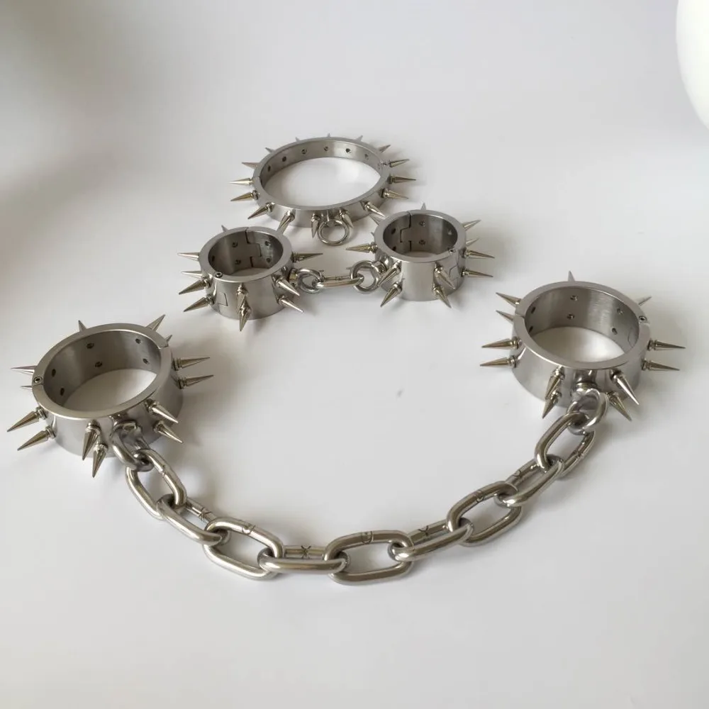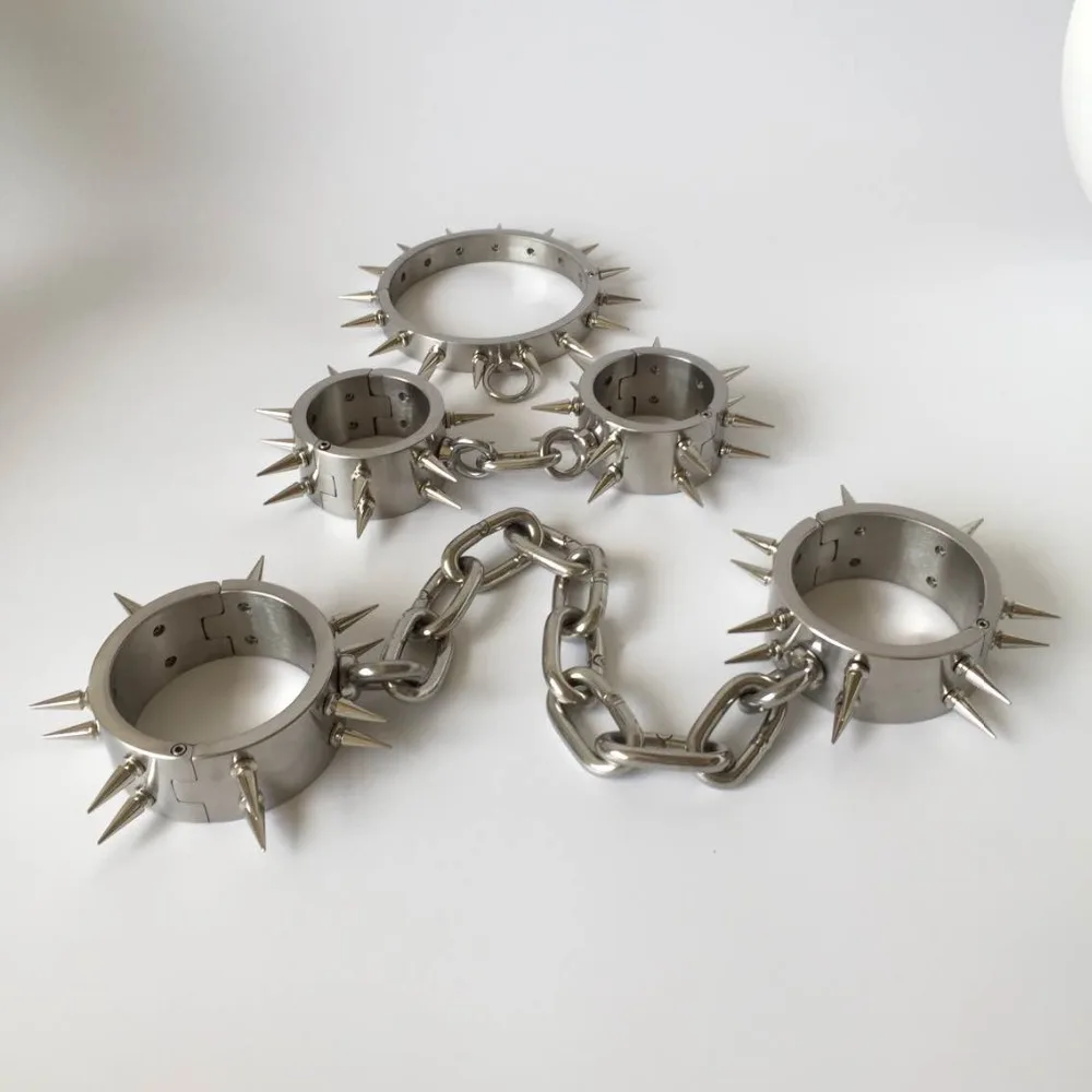 3pcs/set heavy stainless steel bondage collar sex+handcuffs for sex+legcuffs bondage restraints nec look the best product that related to