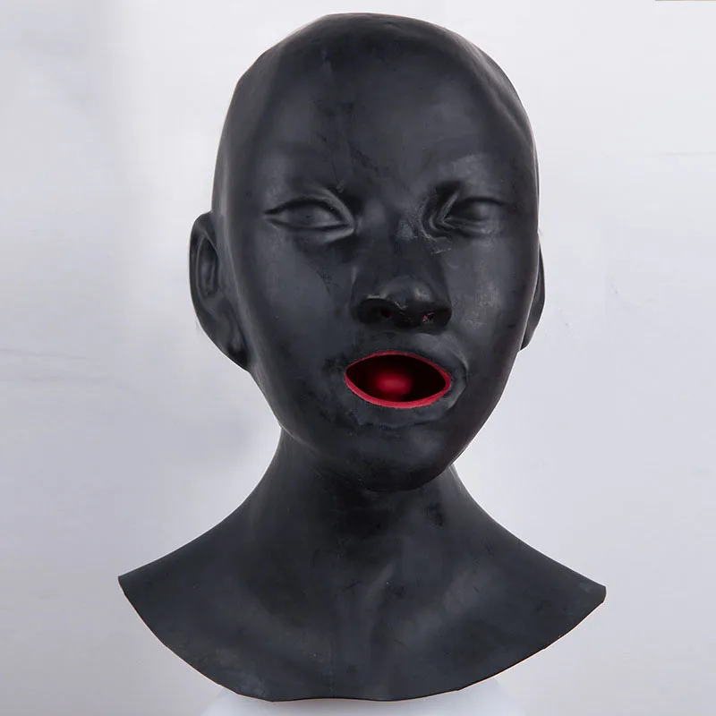 New Latex Style Sex Mask Open Eyes Bdsm Hood Adult Fetish Toys Bdsm Mask Open Mouth Gag Ball Cospla look the best product that related to