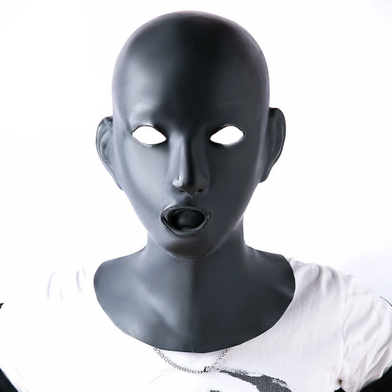 New Latex Style Sex Mask Open Eyes Bdsm Hood Adult Fetish Toys Bdsm Mask Open Mouth Gag Ball CosplaJNK